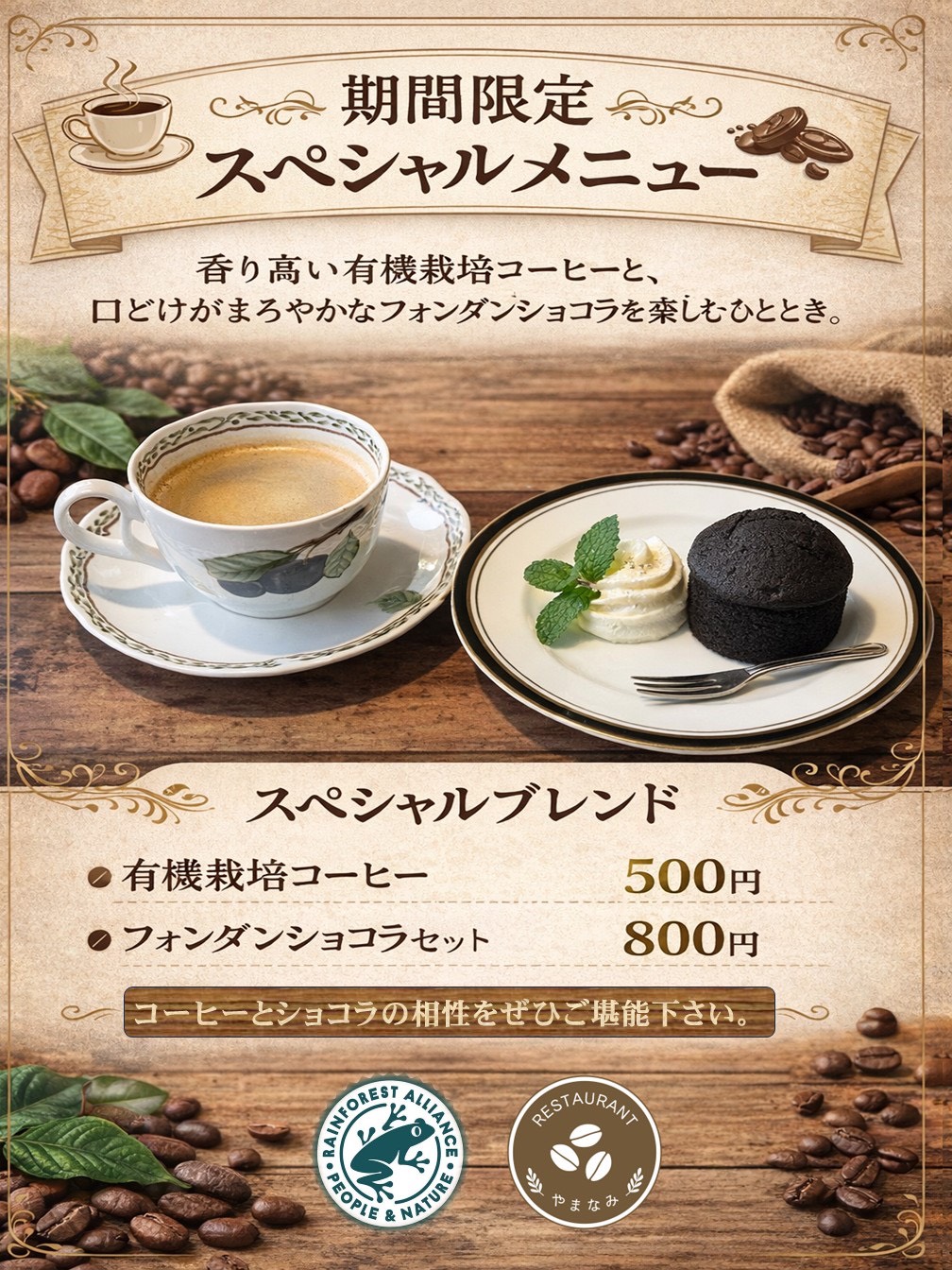 レストランやまなみで期間限定のスペシャルコーヒーとケーキセットを始めます!
